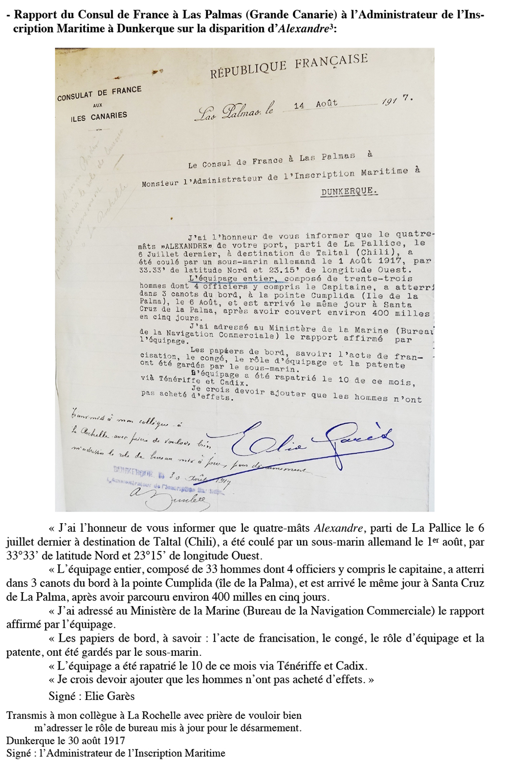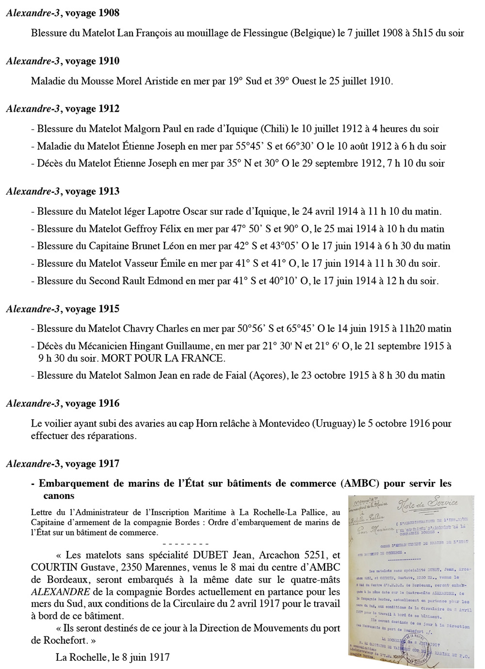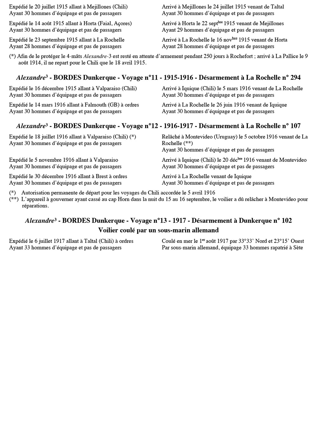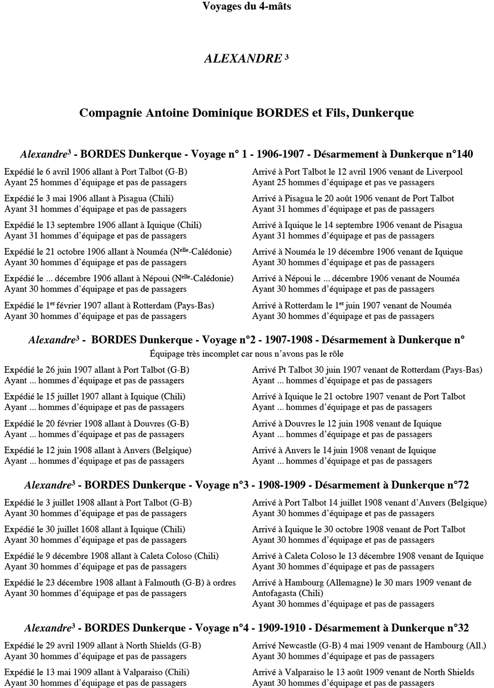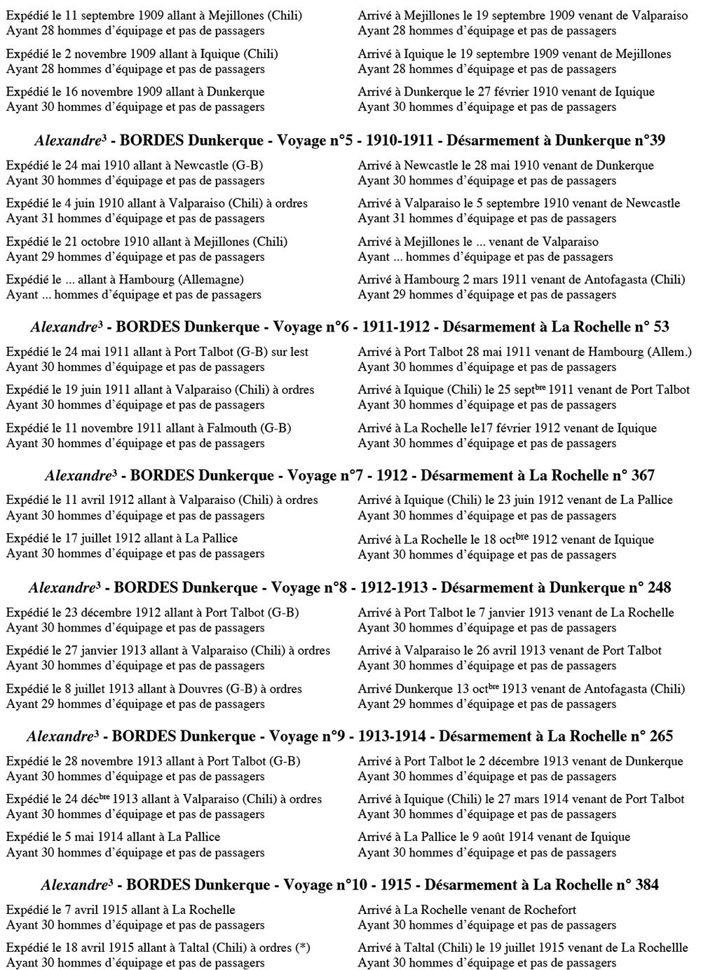 Équipages de Alexandre-3 pour Bordes Dunkerque
