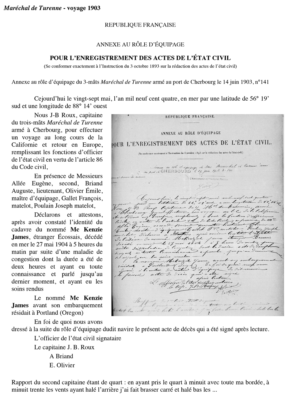 Étranger. Décédé en mer le 27 mai 1904, par 56°09' Sud et 88°14' Ouest