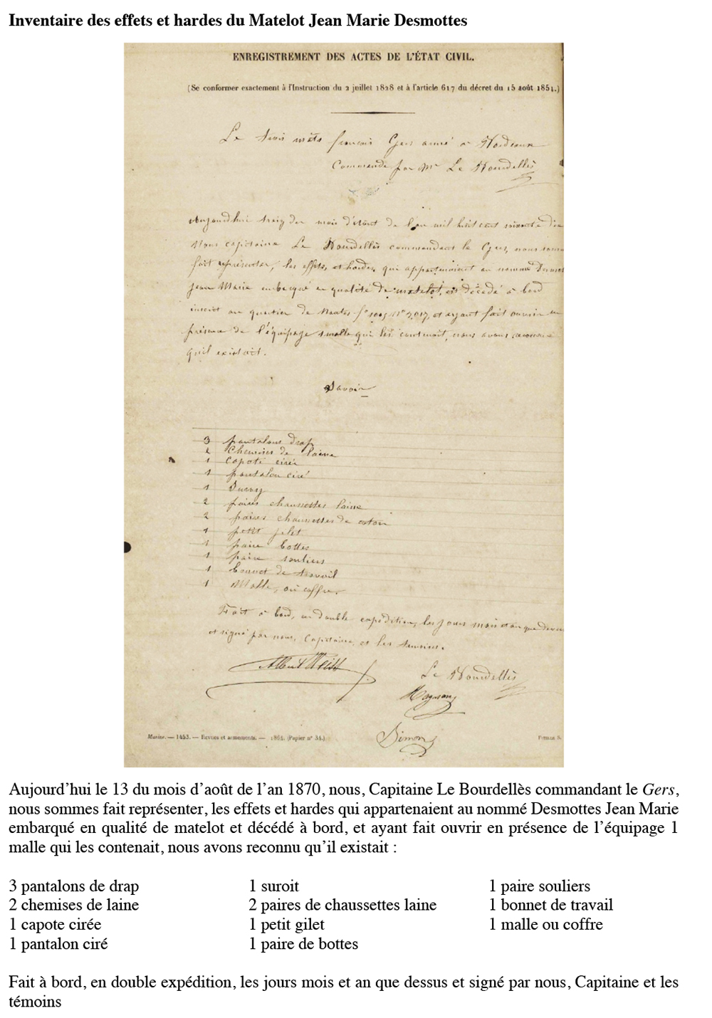 Décédé en mer par 41° 96' Nord et 41° 29’ Ouest le 19 août 1870