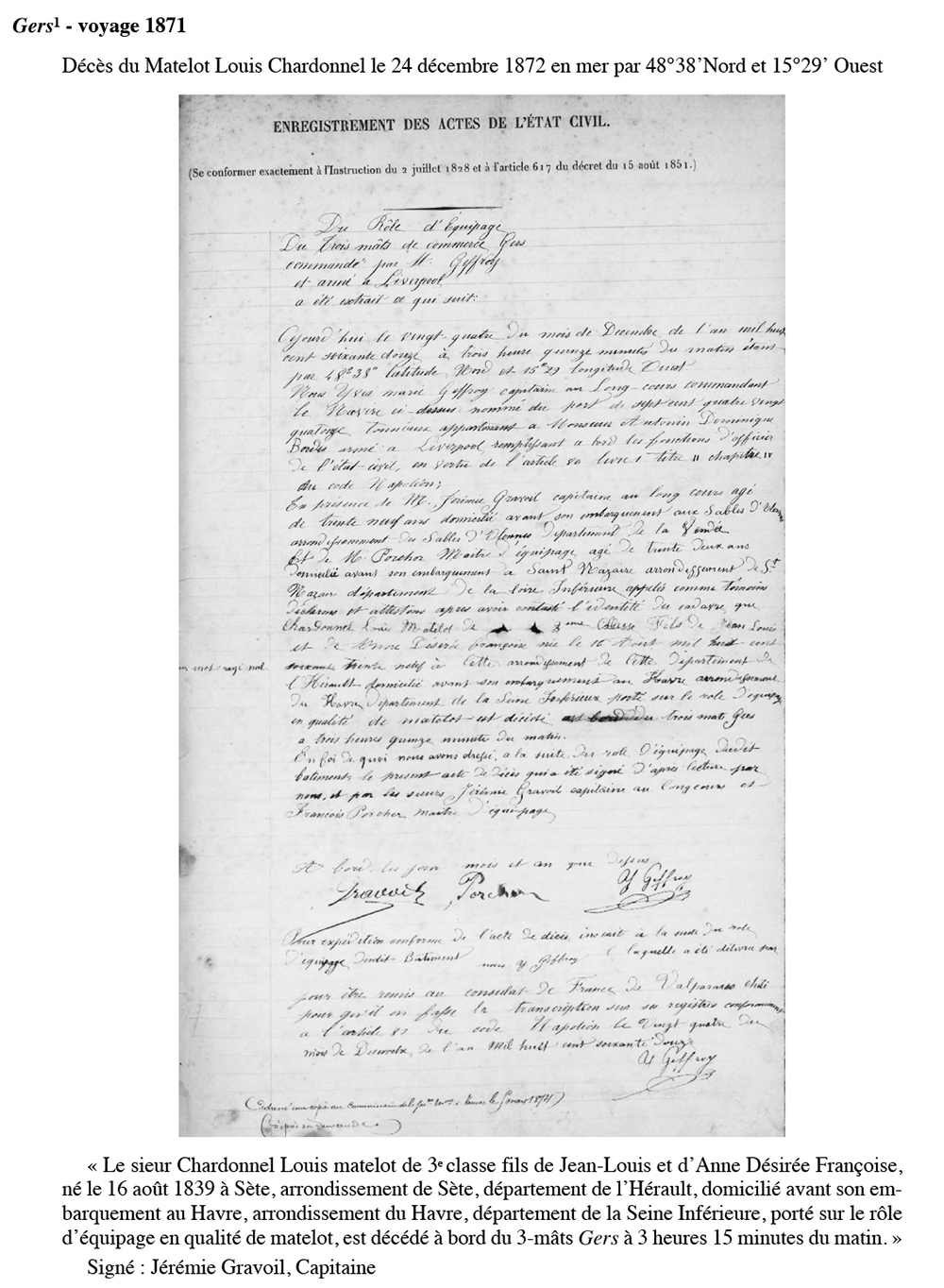 Mort en mer le 24 décembre 1872, par 48°38’N et 15°29’ O