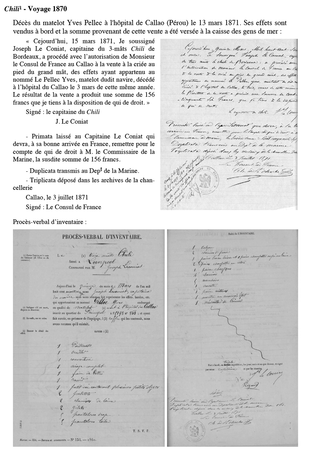Décédé à l'hôpital de Callao (Pérou) le 13 mars 1871