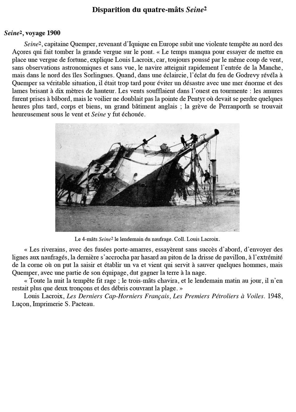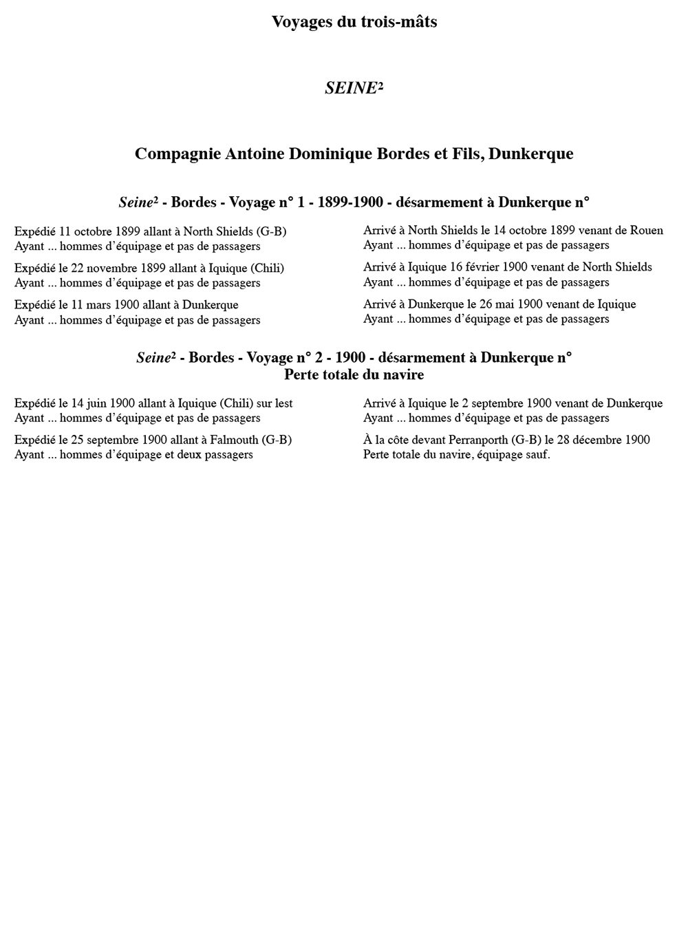 À la côte devant Perranporth (G-B) le 28 décembre 1900 après 2 voyages pour la Cie Bordes. Équipage sauf.