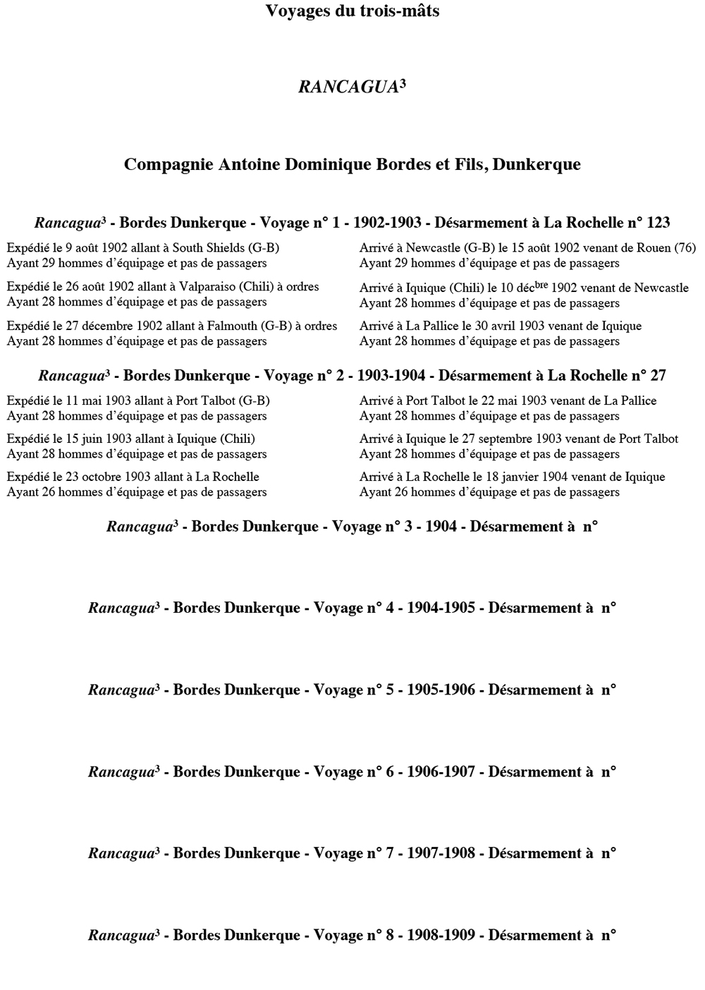 Équipages de Rancagua-3 pour Bordes Dunkerque