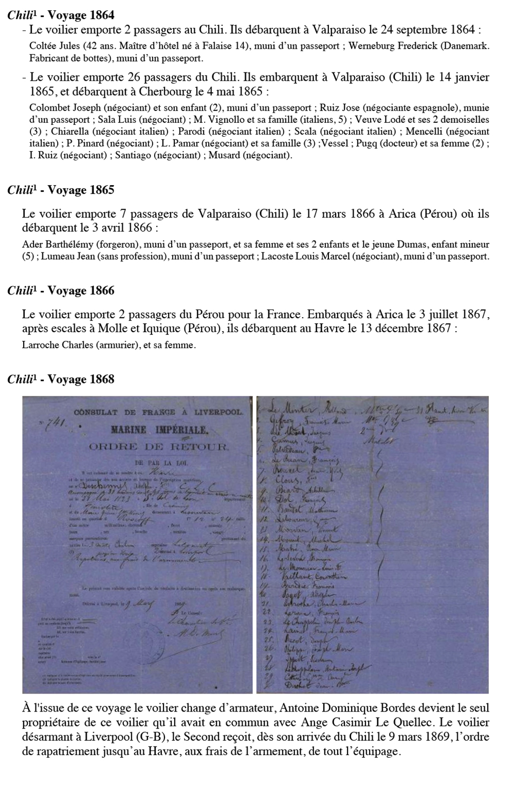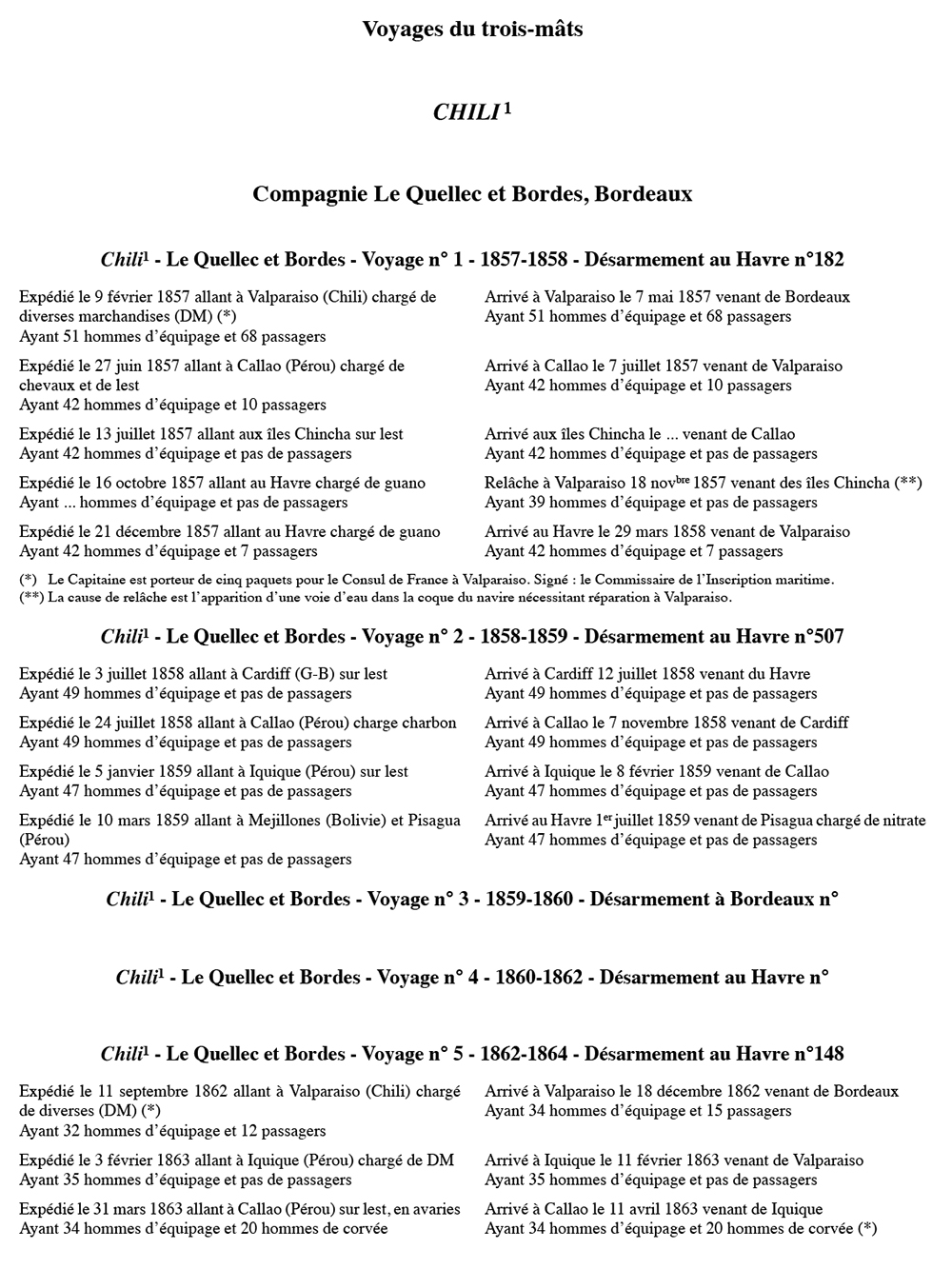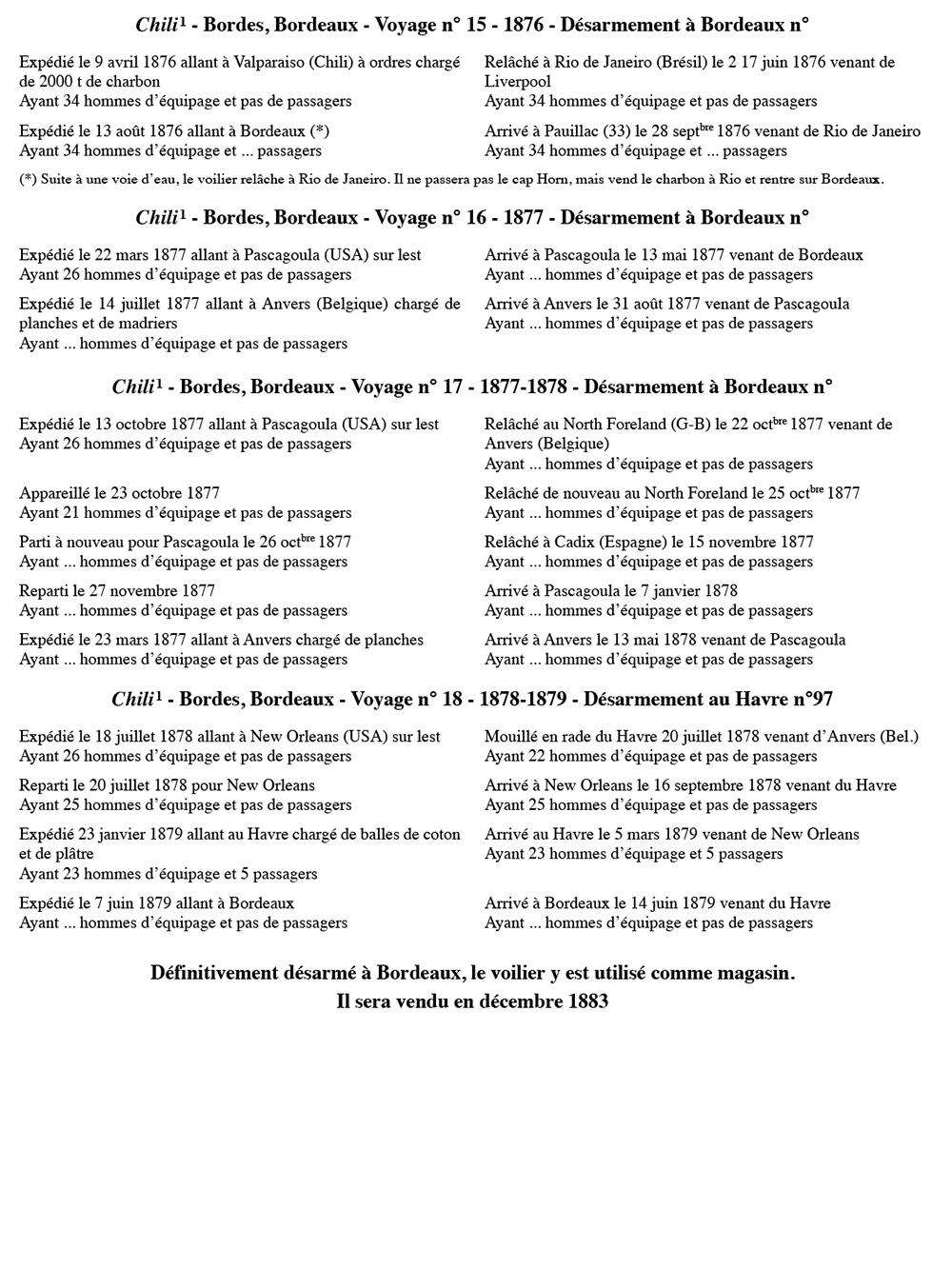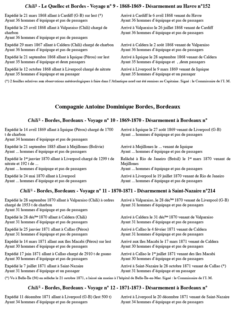Équipages de Chili-1 pour Le Quellec et Bordes Bordeaux