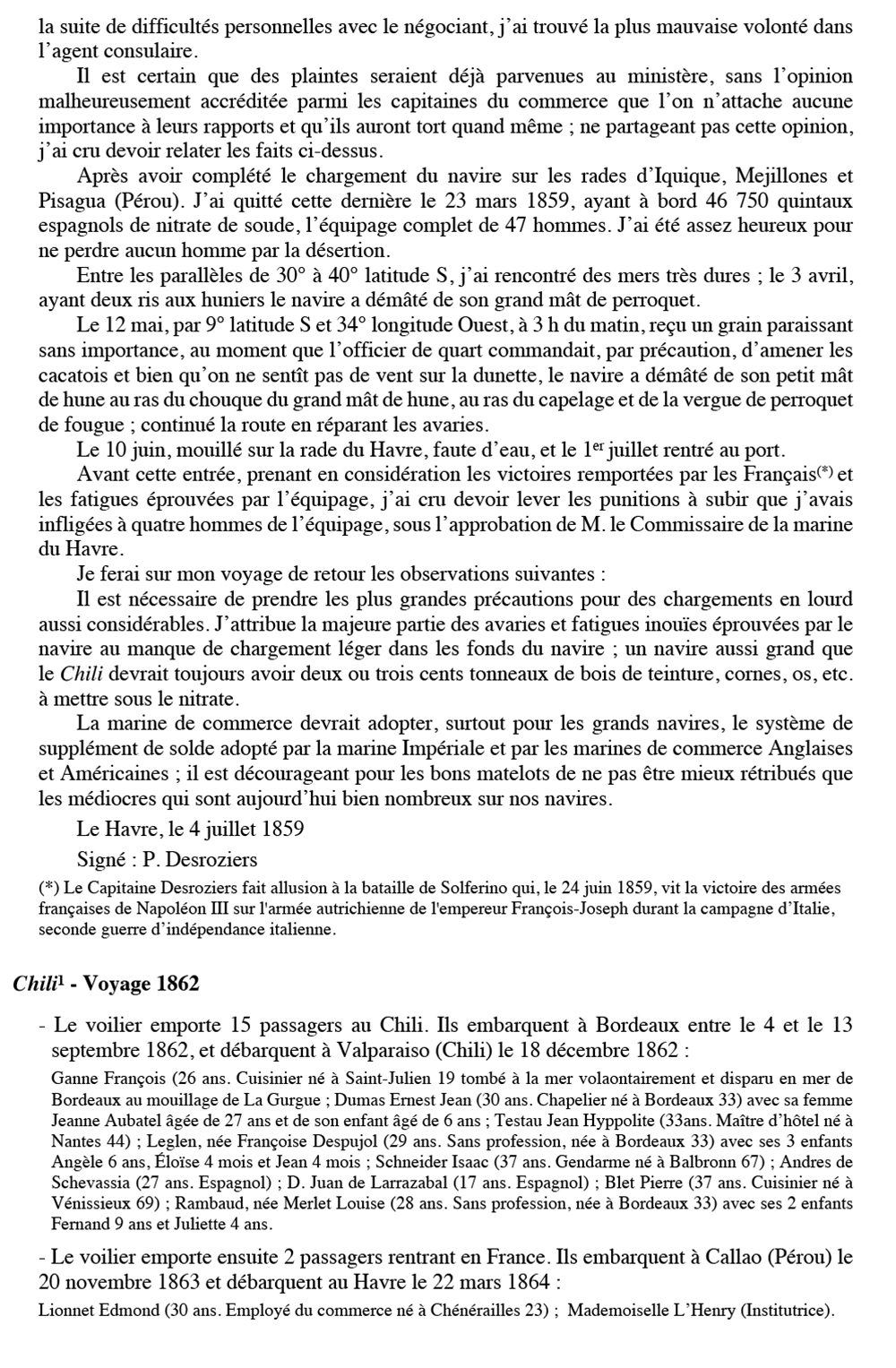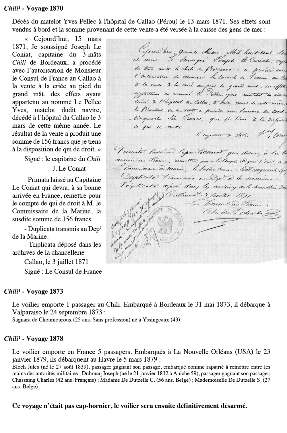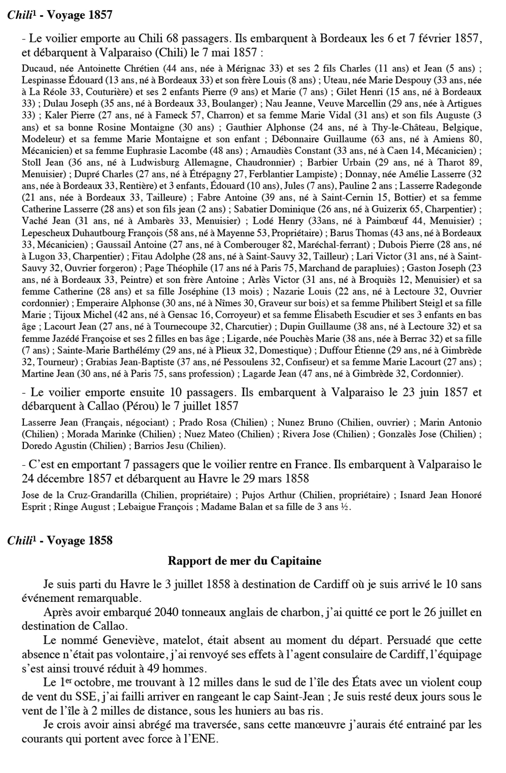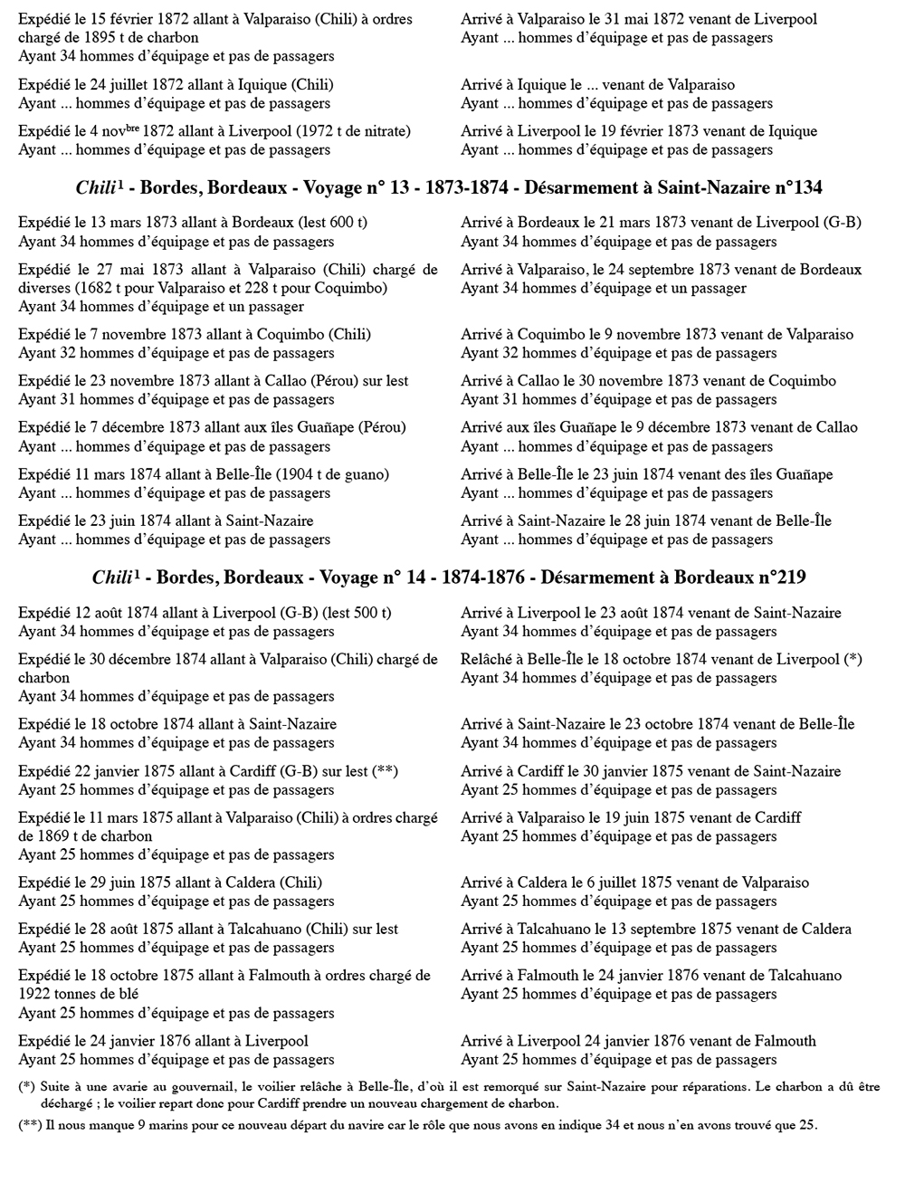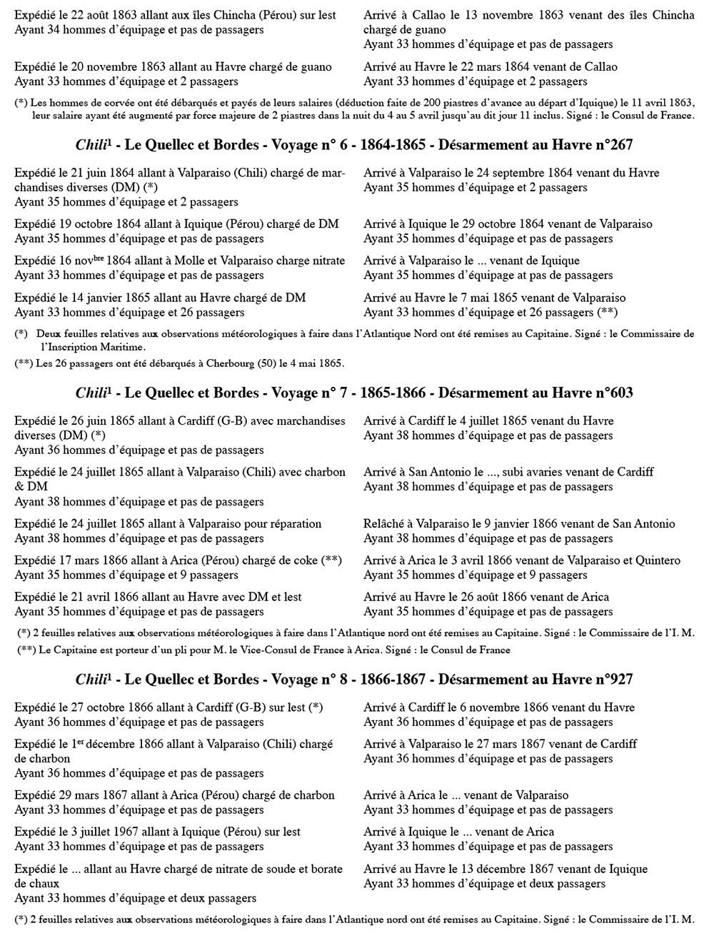 Équipages de Chili-1 pour Le Quellec et Bordes Bordeaux