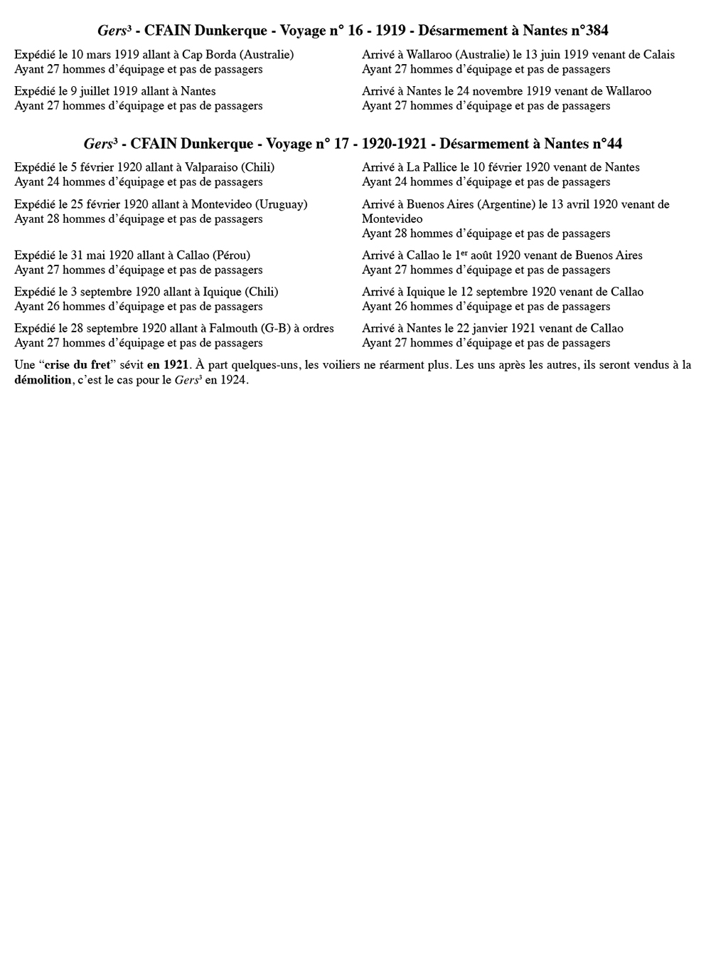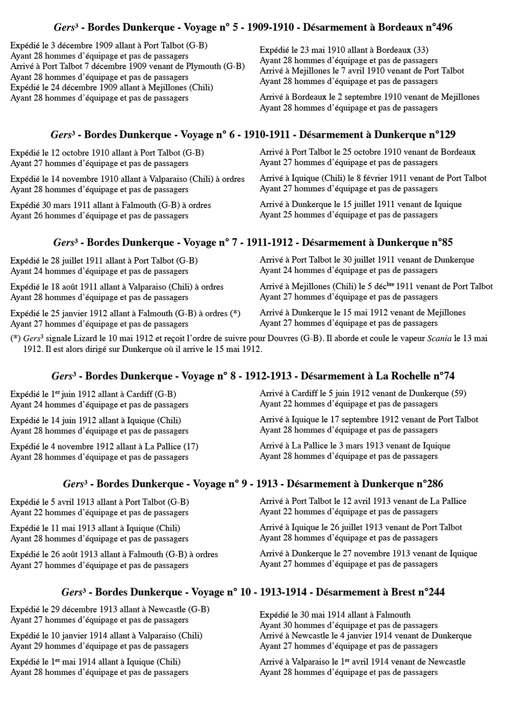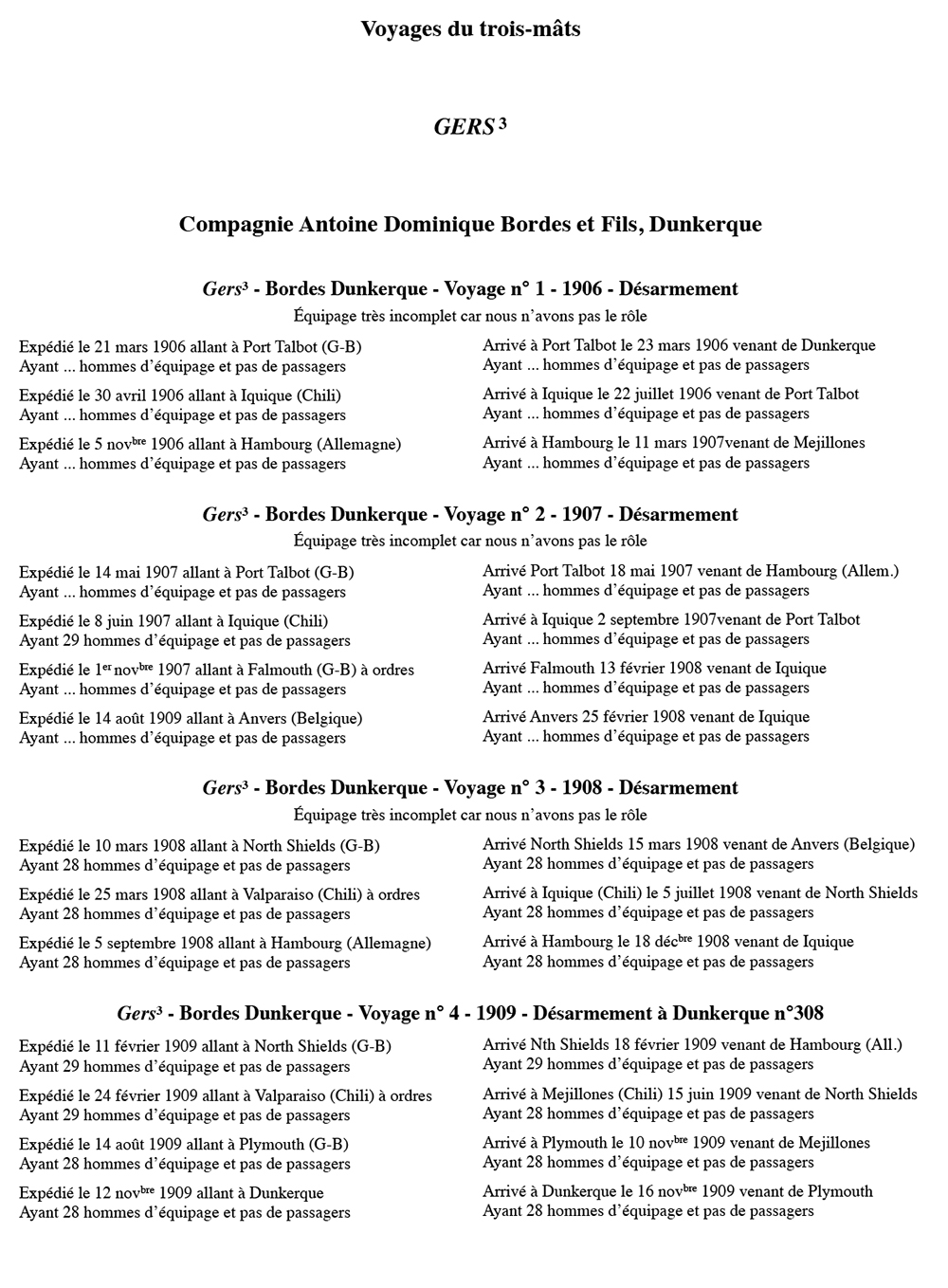 Ex Strathdon, Gers-3 navigue pour Bordes de 1906 à 1917 Acheté par Bordes en 1905. Gers-3 navigue ensuite pour la CFAIN. Désarmé en 1921 il est vendu en 1924 à la démolition après 17 voyages.