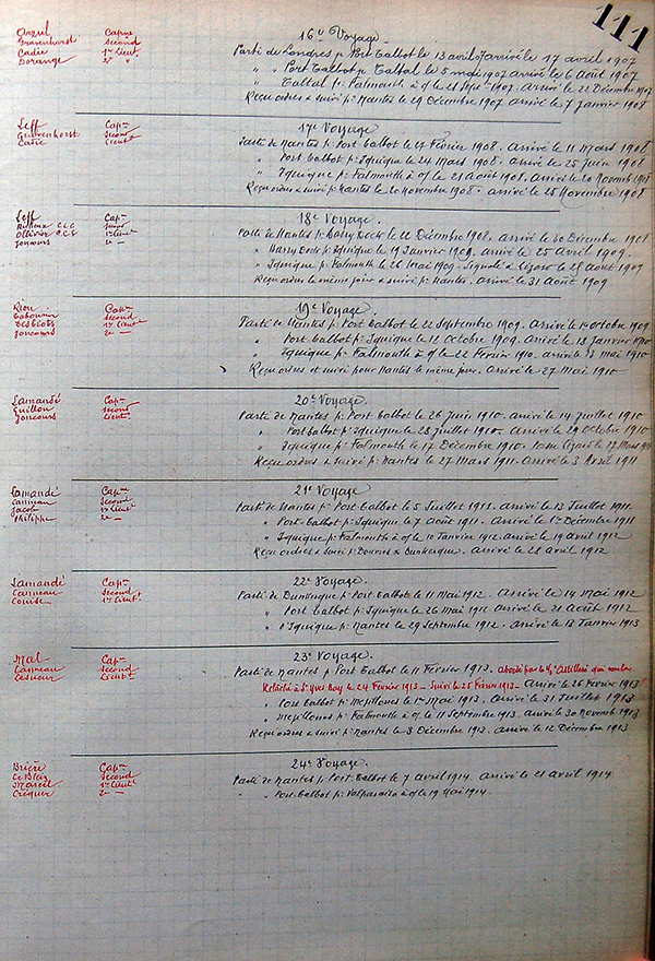 le 1er janvier 1917 au large de Belle-Île. Il avait effectué 26 voyages pour la Cie. Équipage sauf.