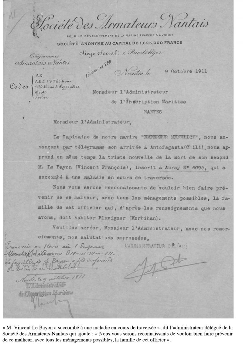 Décédé en mer le 10 septembre 1911 par 58° 00 de latitude Sud et 68° 48' de longitude Ouest